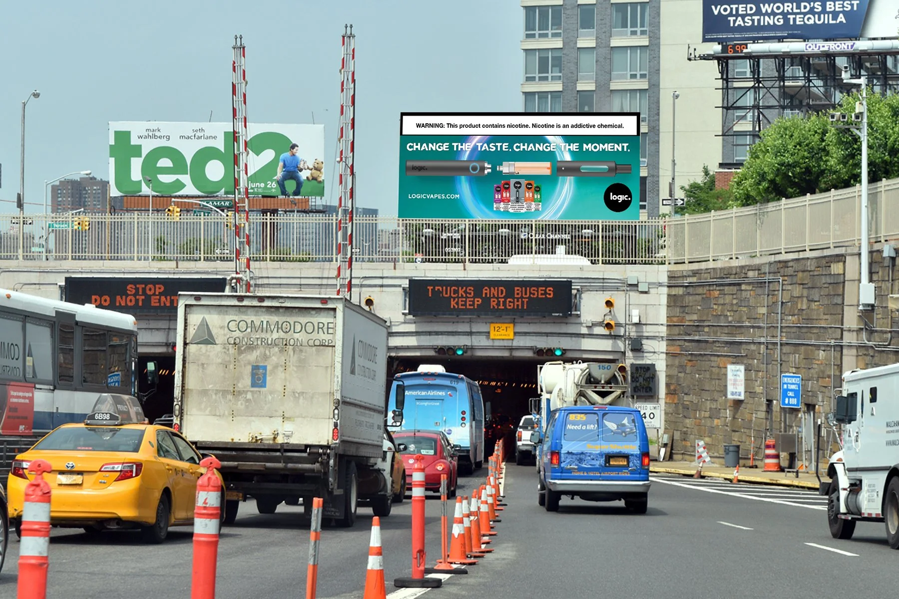 The goal was to develop brand awareness and create something disruptive, memorable, and unexpected that would set the Logic Pro apart from other new vape companies. These digital advertisements and the print ads that follow were displayed across New York, in Times Square and in the Queens Midtown Tunnel.