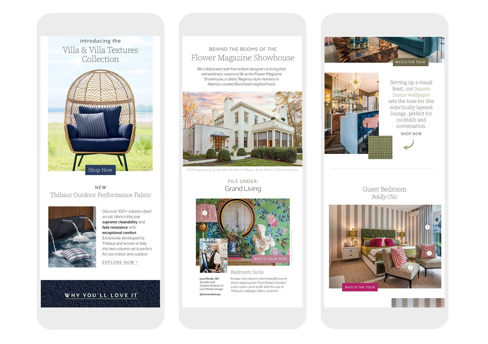 As Thibaut's first and sole digital designer I art directed and designed the whole of their digital identity across various email and social media platforms. I created a comprehensive email system, templates for easy plug-ins, and successfully implemented a cohesive design strategy along with creative consulting, web banners, and miscellaneous print projects as needed. Thibaut's current existing digital design system is founded upon the consistent use of these templates and the art direction that I helped establish.